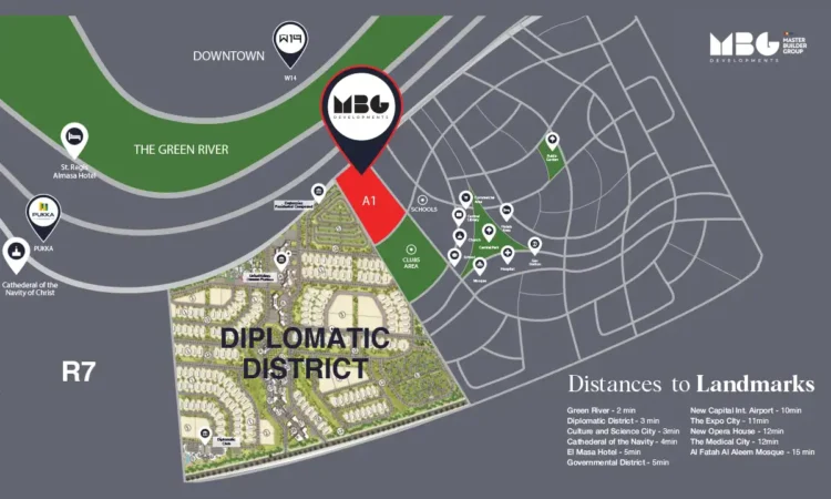 كمبوند ام بي جي A1 يقع في قلب العاصمة الجديدة، مما يسهل الوصول إلى: